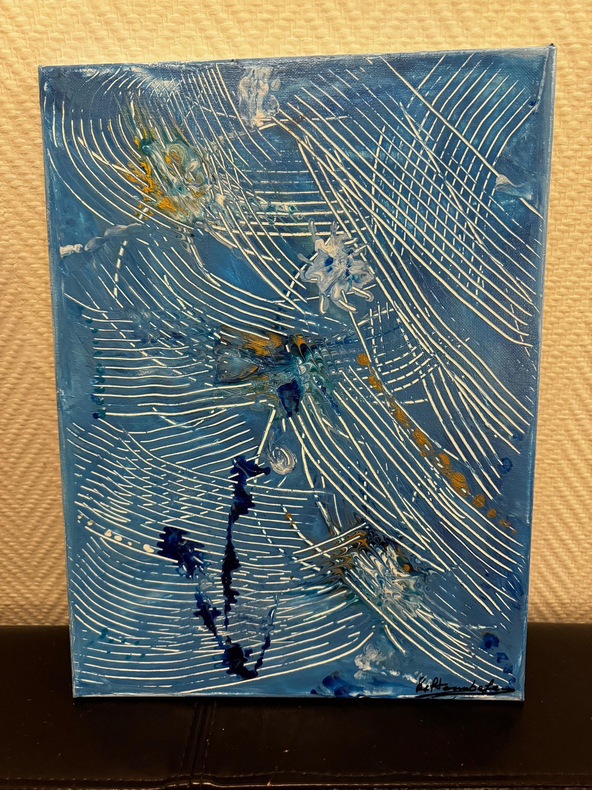 Un tableau d'une grande sérénité où les bleus se déclinent en nuances infinies. L'équilibre parfait entre les masses colorées crée une composition apaisante, invitation au voyage intérieur.