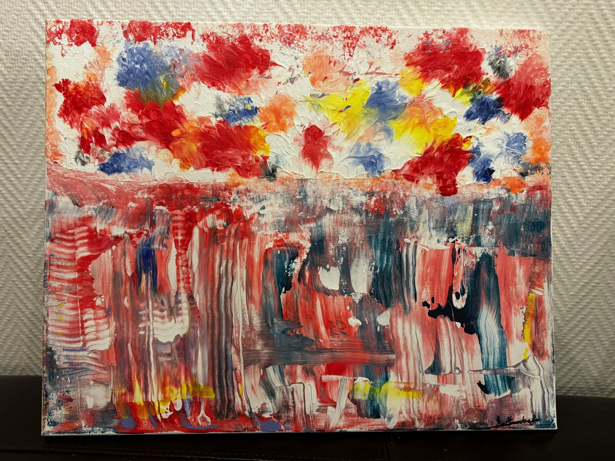 Cette toile capture un instant de nature en plein épanouissement, où la lumière semble émaner du centre même de la composition. Les nuances célestes se fondent dans une étreinte lumineuse, créant une atmosphère de sérénité transcendante.